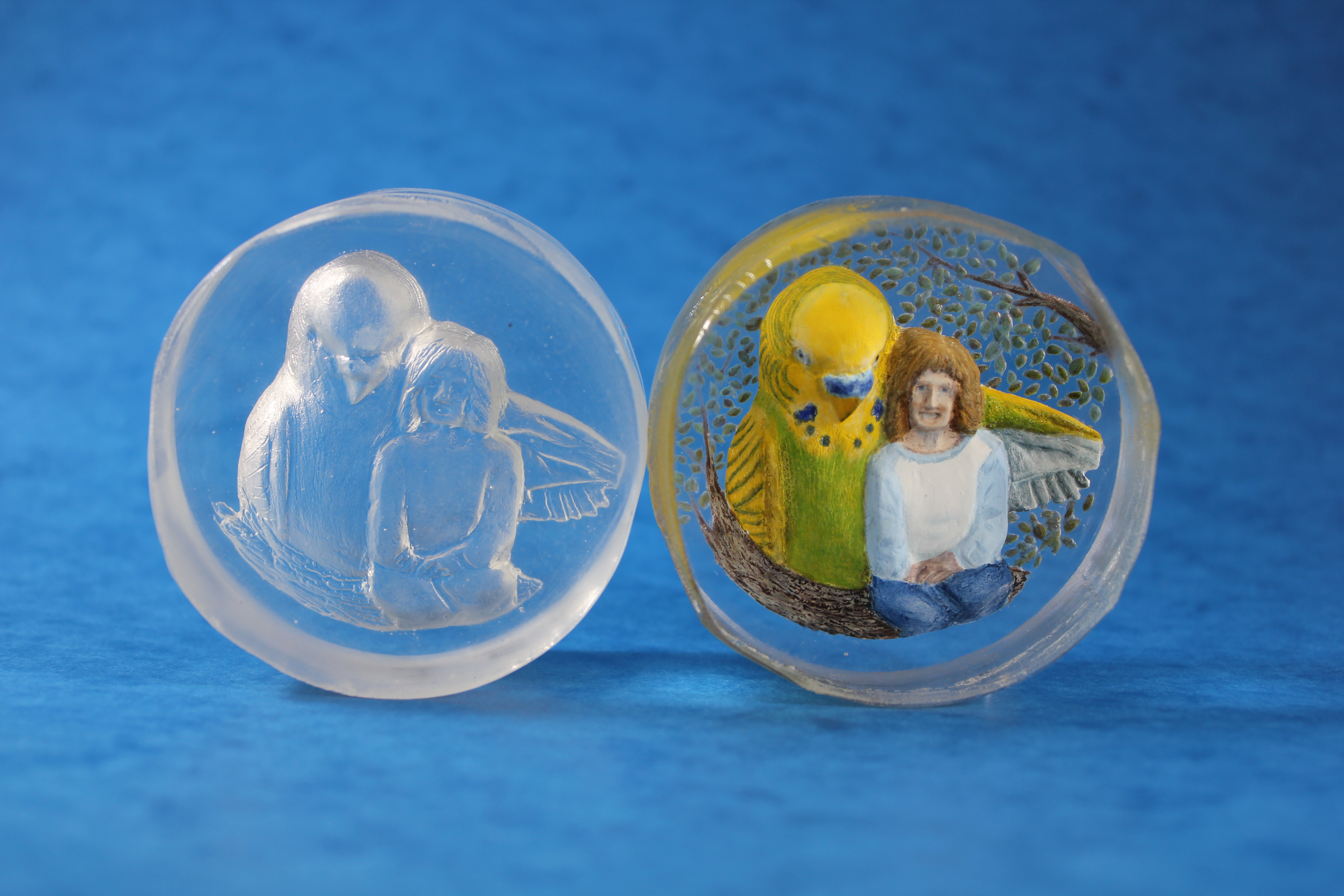 In 2020 I was awarded a Developing Your Creative Practice Grant from Arts Council England to refine the skills involved. I was able to learn from engraver Nancy Sutcliffe and Miniature enamel portrait painter Gillie Hoyte Byrom, both experts in their field. I adapted what they taught me, taking the size ever smaller. The work shown here represents some of the outcomes of this transformational year. Some are finished ‘gems’ and some are work in progress. The original Essex Crystals were jewels and personal objects and that is where I aim to head with these pieces. I’m working with an amazing jeweller, Isabelle Capitain to realise some initial ideas (I’ll post about this separately), and I hope to apply for an Arts Council Grant to learn more about jewellers and what this work could become in their hands! More to follow on this soon…